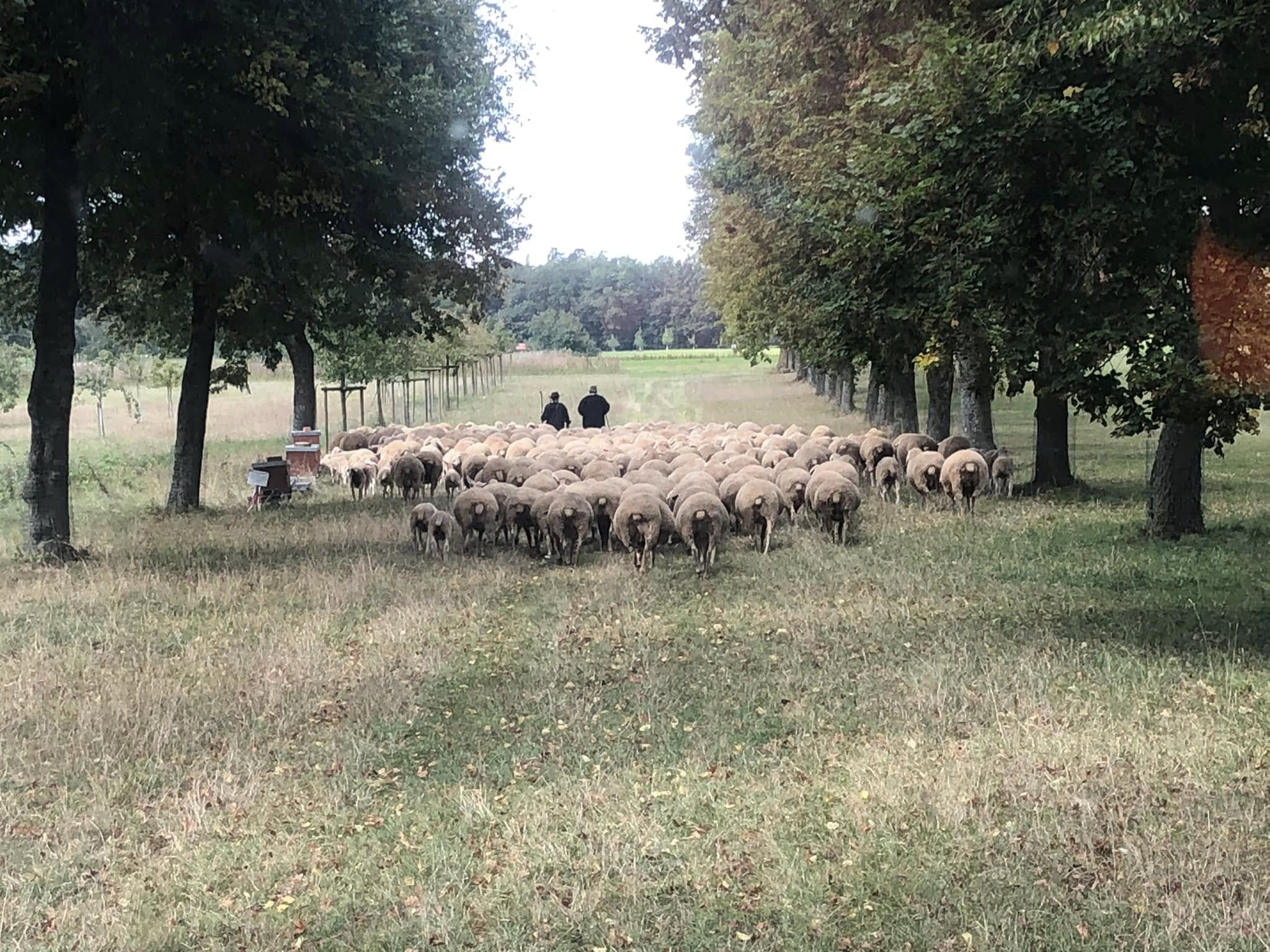 Hello, we are Kerstin and Andreas Smietana. We are employed as professional shepherd masters at the Agricultural College in Triesdorf (Bavaria/Middle Franconia). We manage a flock of sheep that is cared for in the traditional style of herding, we herd with German Shepherd Dogs. In Triesdorf, the second oldest Bavarian breeding herd has 265 Merino ewes plus offspring in a site-based herding system. The sheep have been cared for and looked after by the Smietana family for many years. In addition to her book breeding, the care of the orchards and grazing areas is of great importance for biodiversity in Triesdorf. In addition, breeding animals are sold and lambs for slaughter are marketed. Animal keepers, animal scientists from the vocational school, university students and technicians use the sheep for lessons and practical exercises.